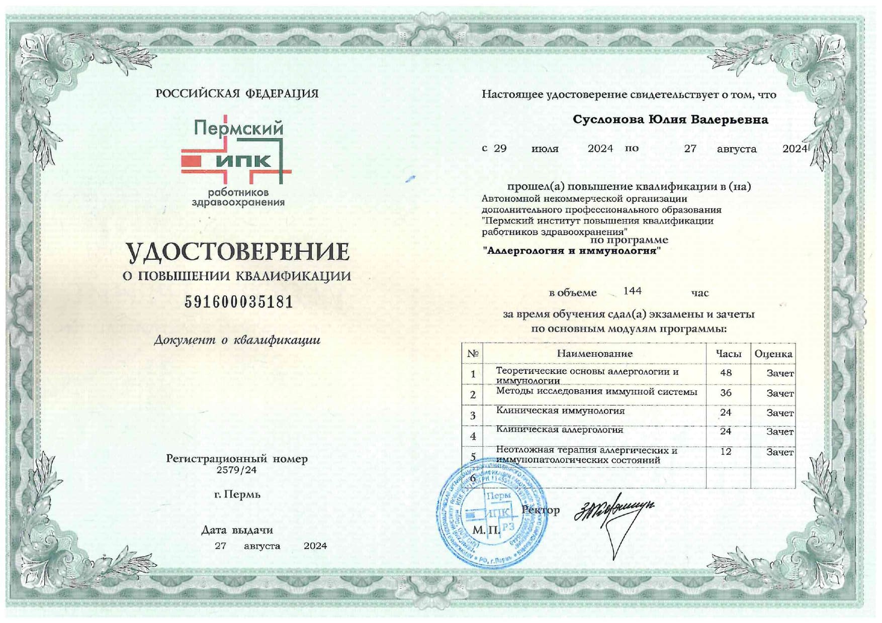 От посещения аллерголога Суслоновой остались только хорошие впечатления. Я точно не зря обратилась именно к этому доктору.