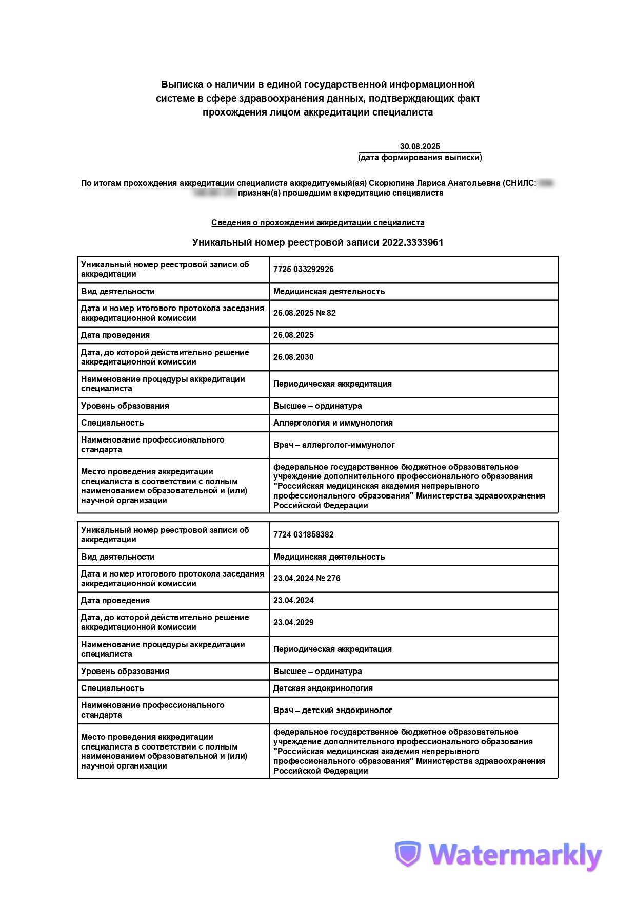 стаж врачей клиники