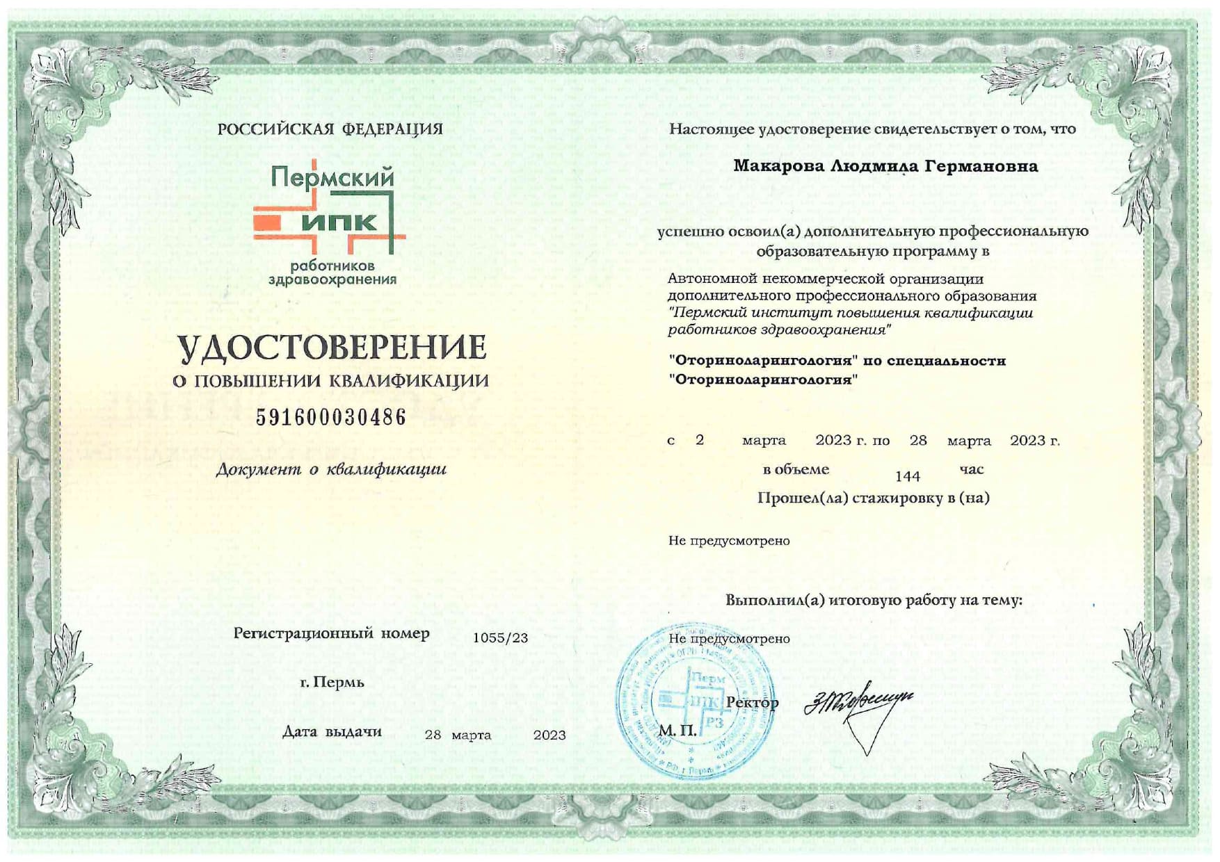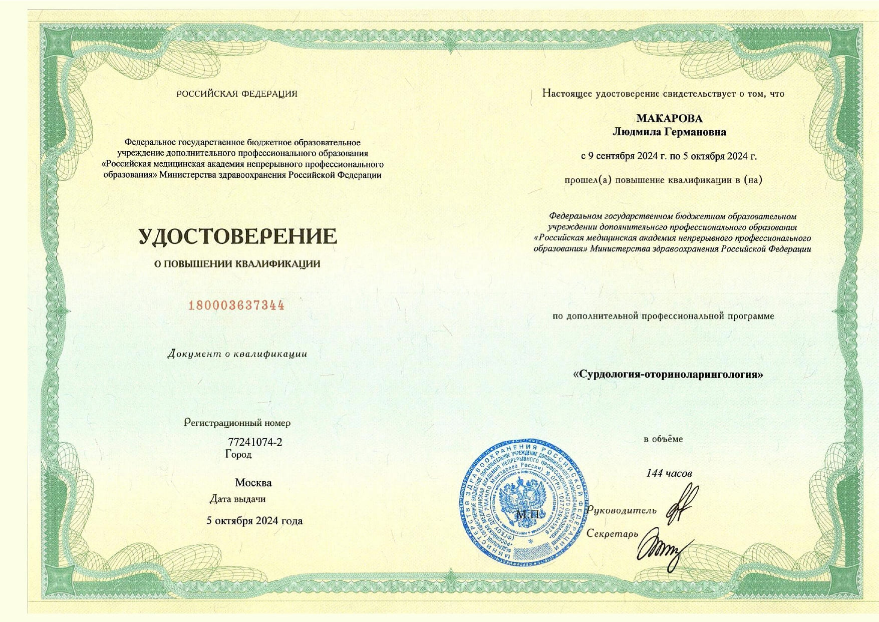 Макарова Людмила Германовна - ЛОР врач, сурдолог