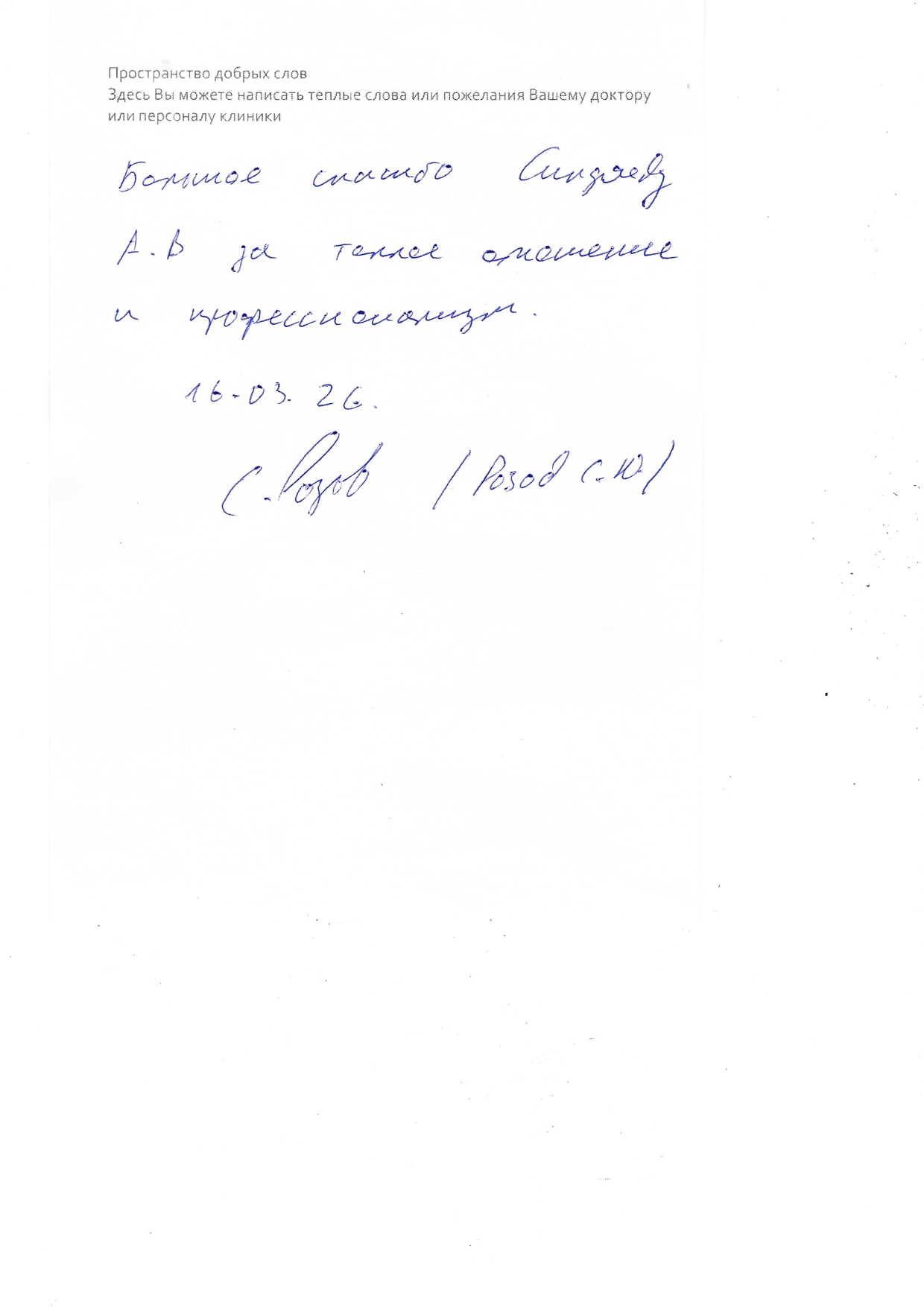 Большое спасибо Синдяеву А.В. за теплое отношение и профессионализм.