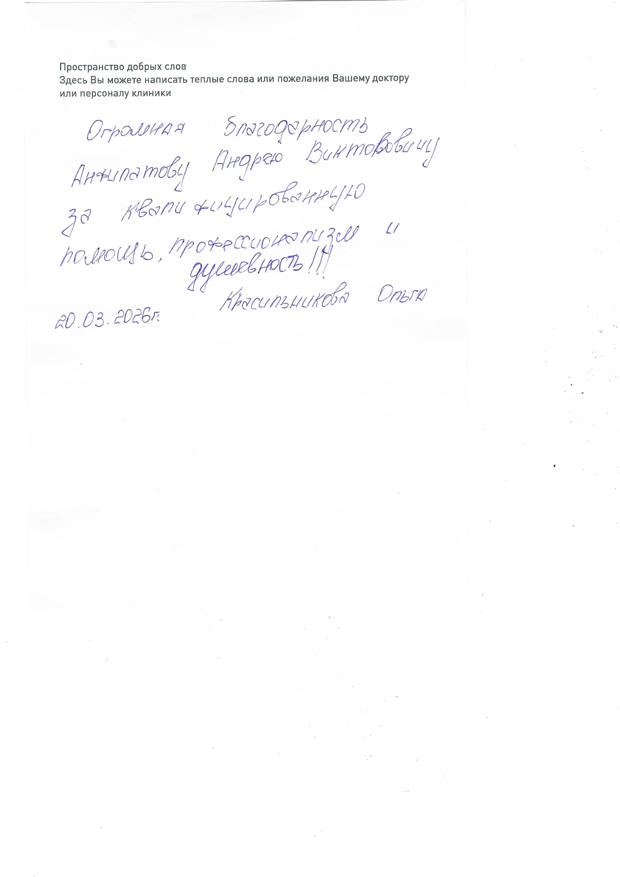 Благодарим Анфилатова Андрея Викторовича за качественную профессиональную медицинскую помощь и доброе отношение к пац