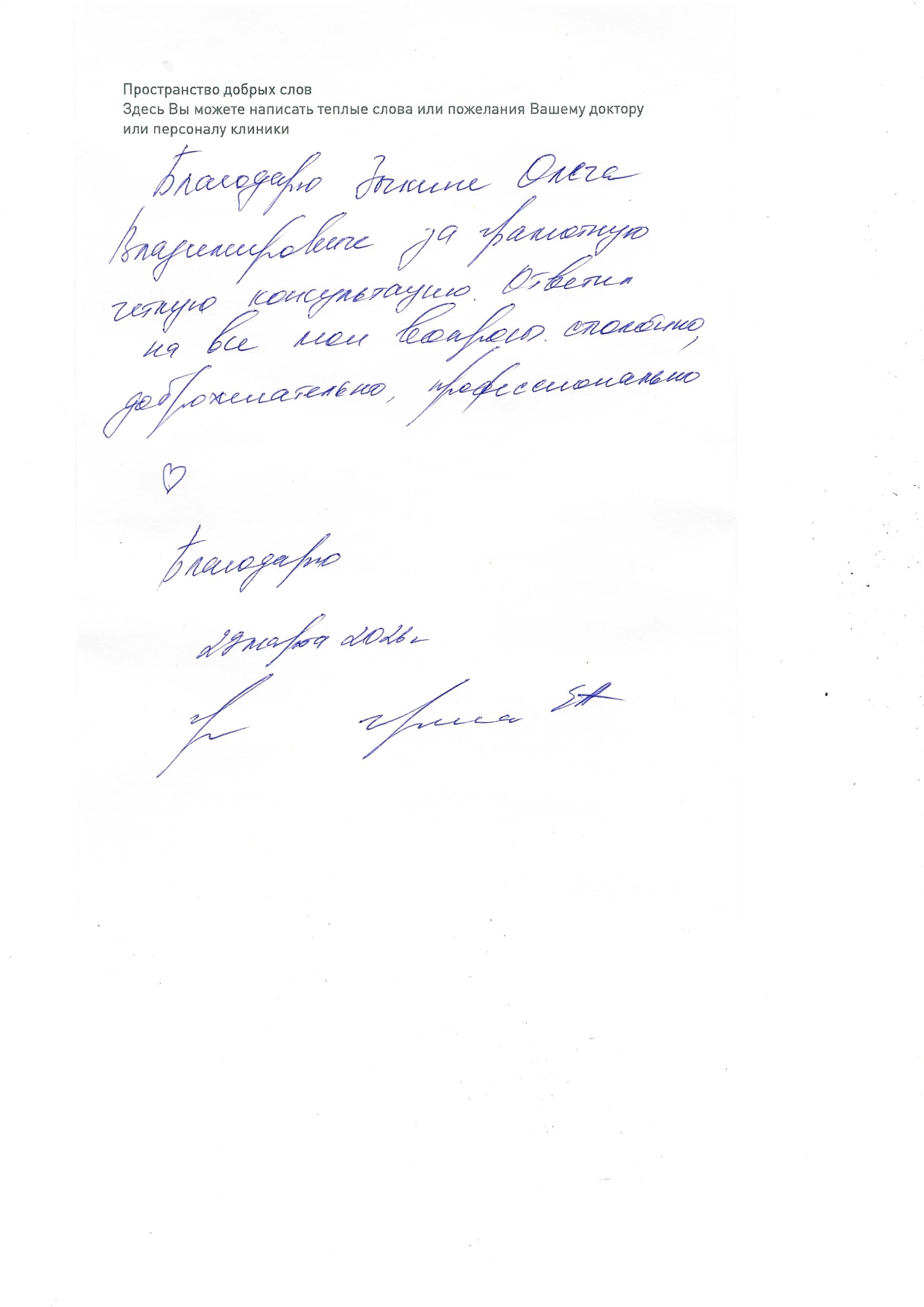 Спасибо. Я довольна приёмом врача.