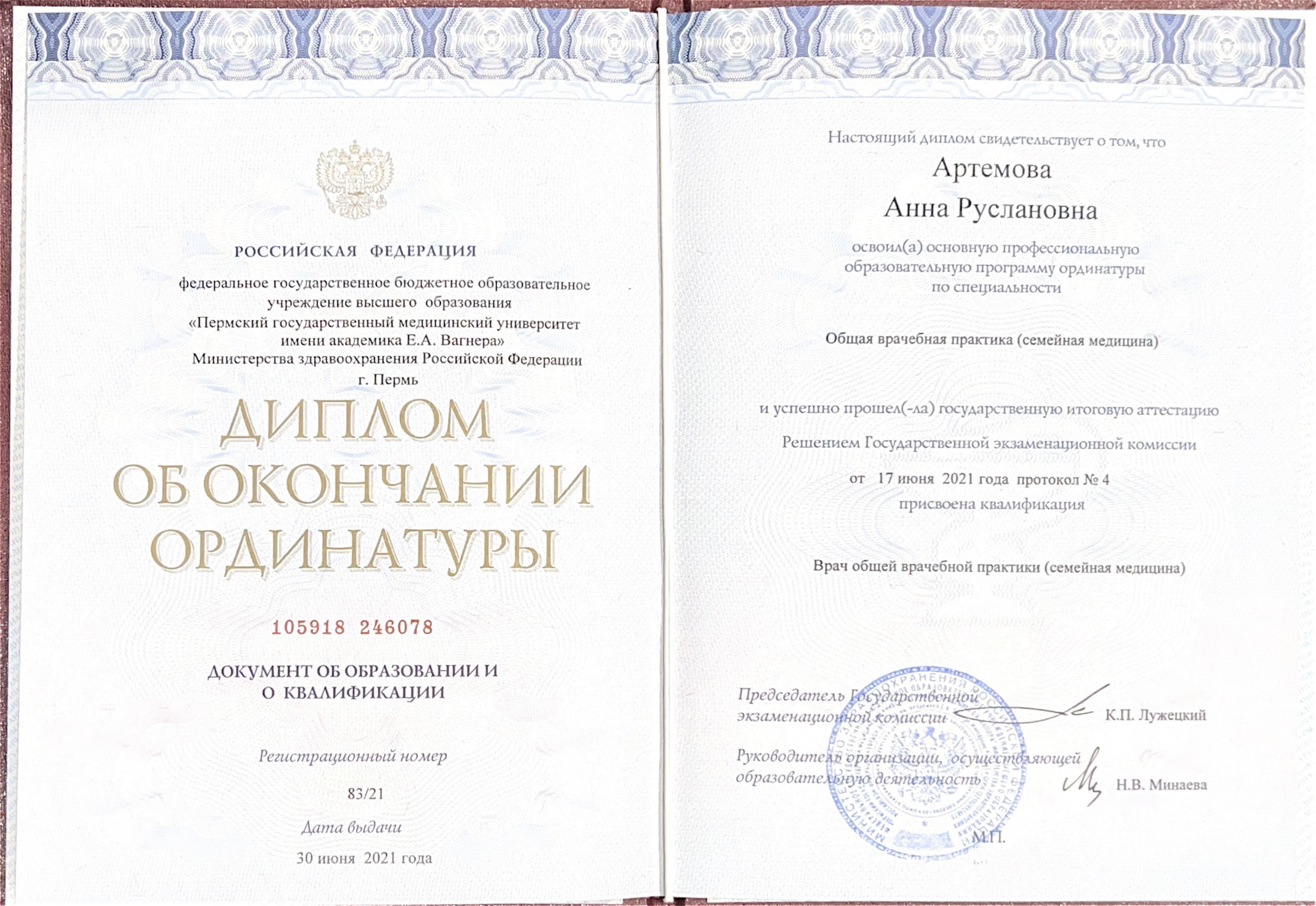 2021 г. - ординатура "Общая врачебная практика (семейная медицина)"